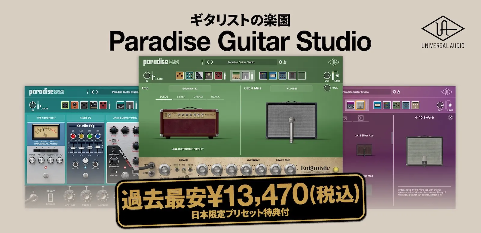 Universal Audio 社が開発した、ギターアンプシュミレータープラグイン。「UAD Paradice Guitar Studio」が、26年3月31日まで限定で60%OFFの¥13,470(税込)で発売中!