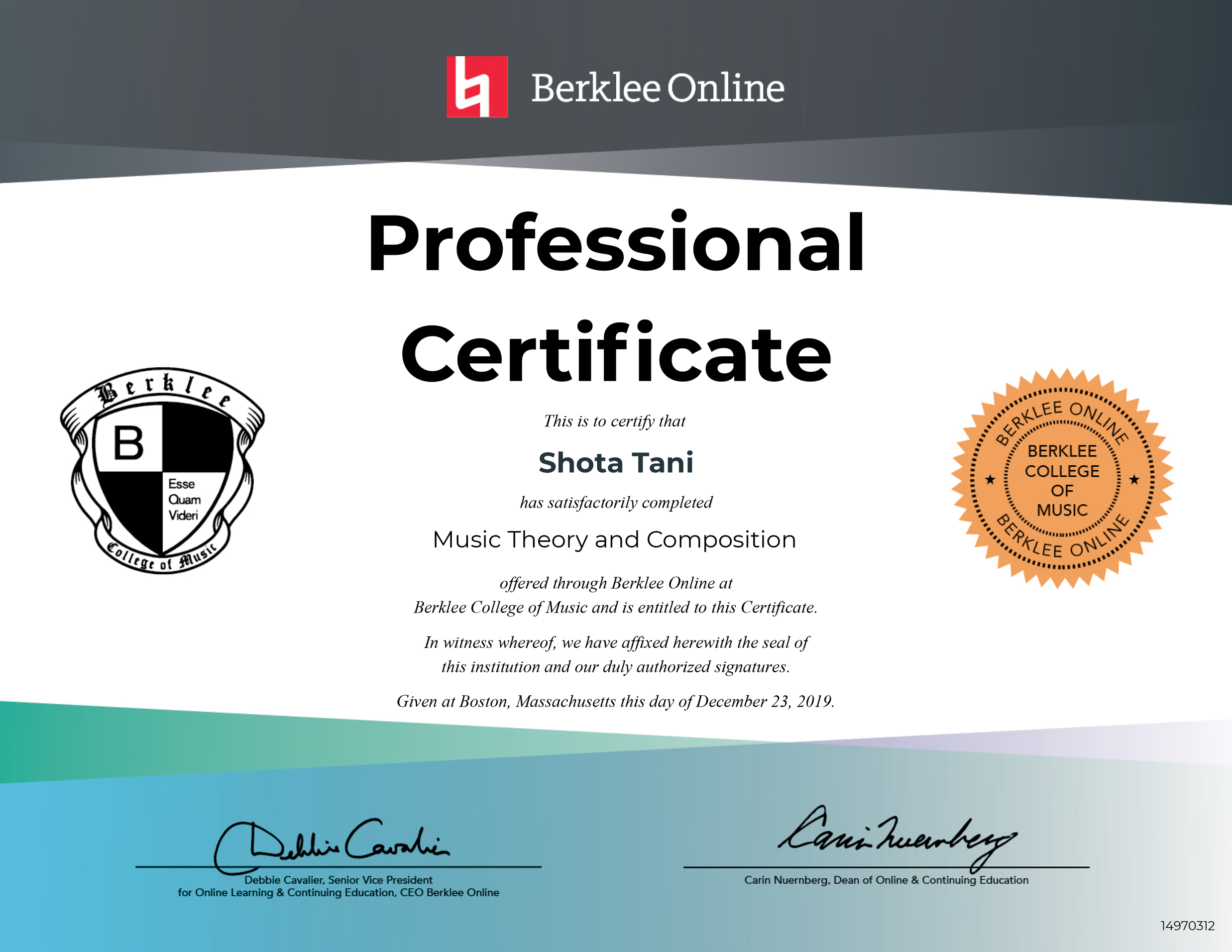 その後、約6年間アニメ・ゲーム業界でキャリアを重ね、米国音楽大学Berklee college of music 通信制「Berklee Online」で音楽理論を中心に作編曲技法を学び直す